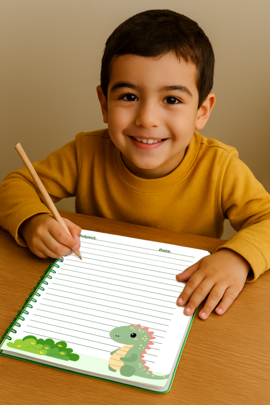 🦕 Adorable Dinosaur Design – Both cover and inner pages feature a friendly dino character